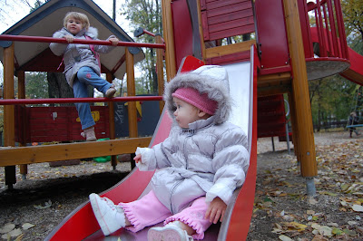 The girls tested out their new jackets at the park today. It was a nice misty afternoon.
